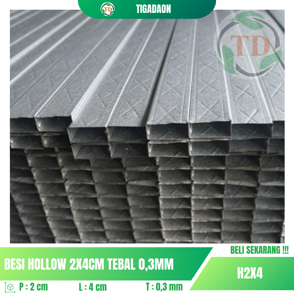 Hollow gipsum Ukuran 2×4 dan 4X4 dengan Varian Ketebalan Mulai dari 0,25 mm – 0,6 mm biasanya terbuat dari besi galvanis dan galvalum.