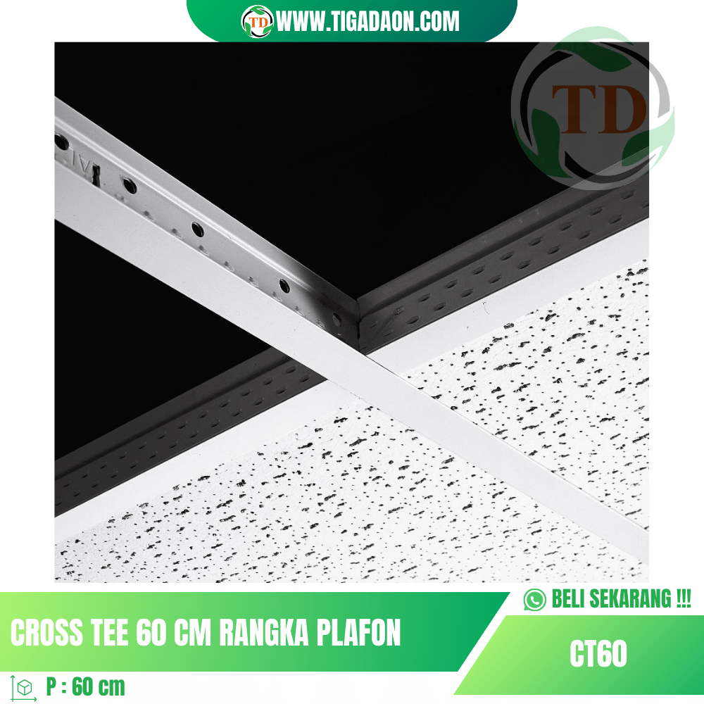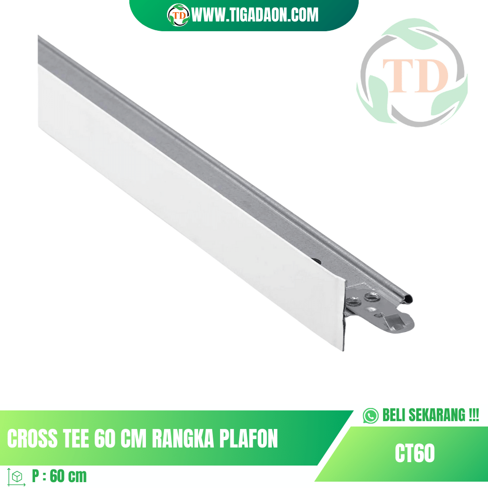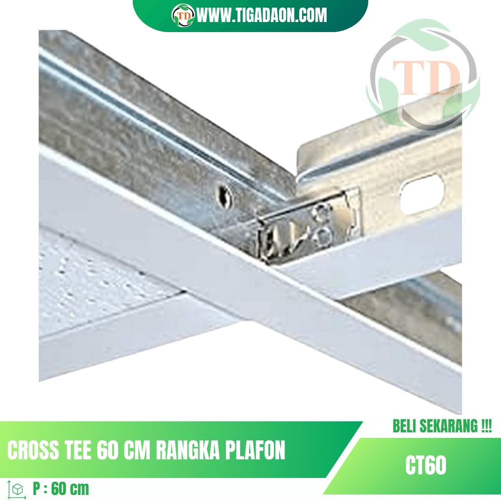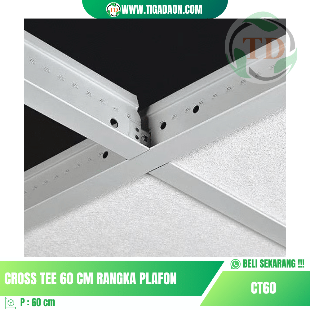 - Desain Ergonomis: Dengan panjang 60cm, Cross Tee dirancang secara ergonomis untuk memberikan dukungan yang optimal dengan meminimalkan jumlah sambungan. Ini tidak hanya meningkatkan kekuatan struktural, tetapi juga memberikan penampilan yang bersih dan rapi.