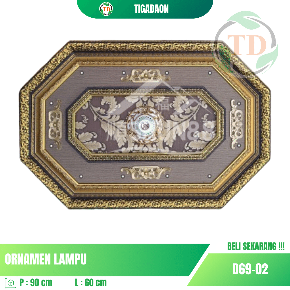 Ornamen Lampu 60×90 cm Segi 8 Coklat Gold D69-02