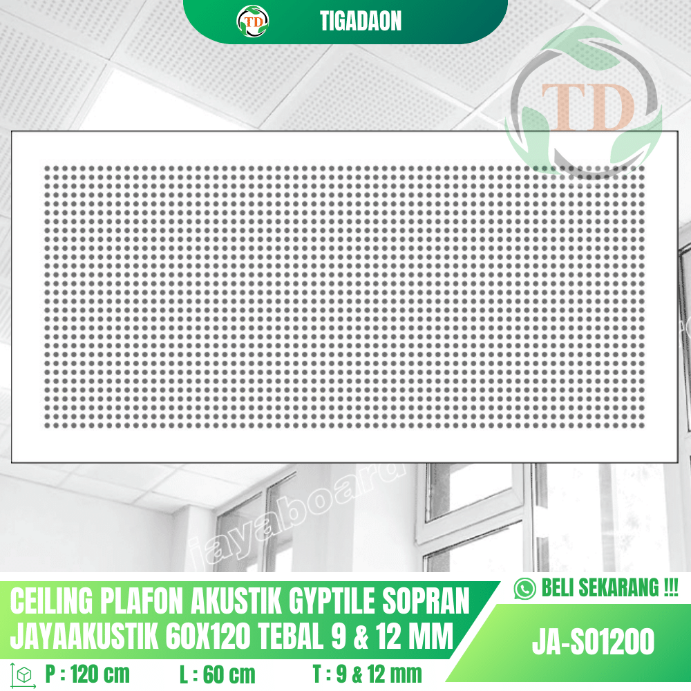 Tokopedia : https://www.tokopedia.com/tigadaonplafon/gyptile-byhua-jayaboard-60×120-ceiling-plafon-akustik-panel-peredam