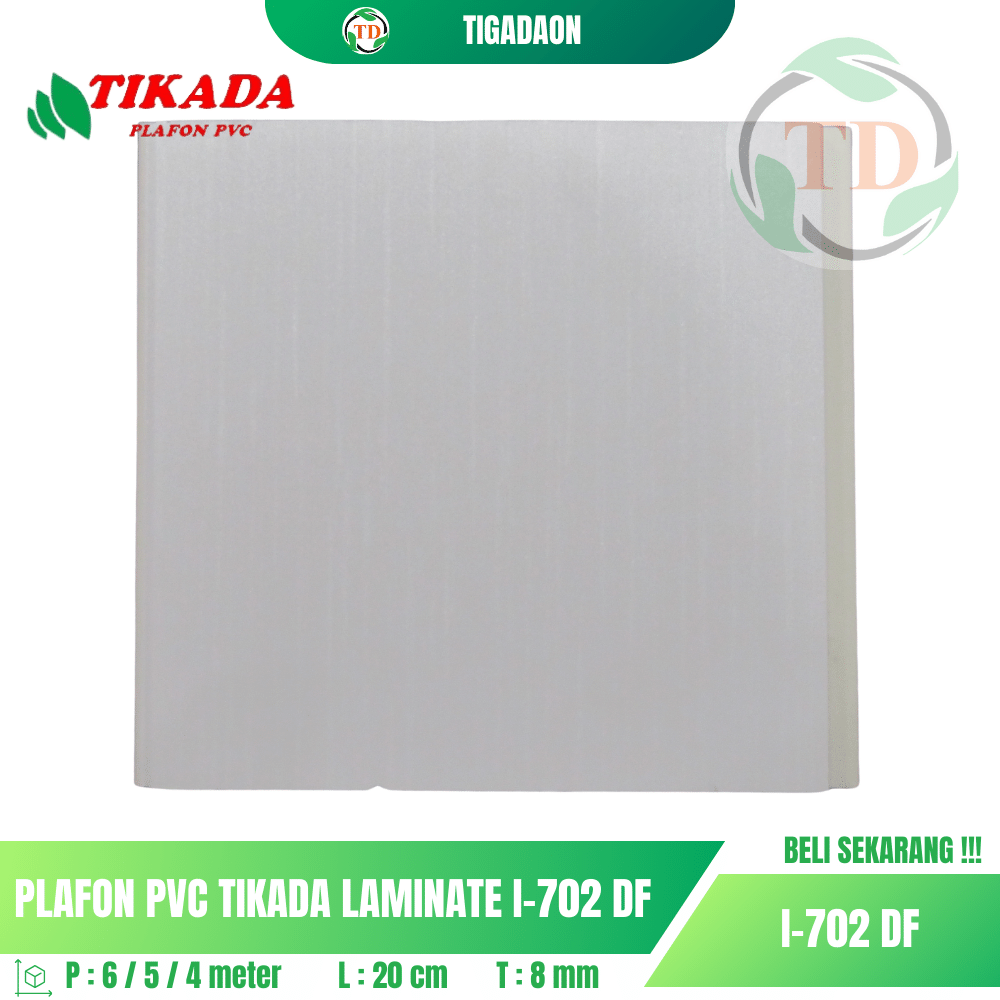 Plafon PVC TIKADA I-702 DF Laminate corak kayu warna putih memberikan tampilan elegan dan natural untuk ruangan Anda.
